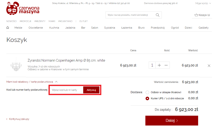 Czerwona Maszyna - instrukcja korzystania z kodów rabatowych: