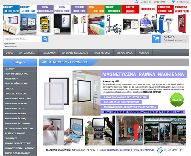 Co znajdziesz w ofercie sklepu Epicenter24.pl? To przede wszystkim szeroka gama różnego rodzaju stojaków ekspozycyjnych, dzięki którym plakat reklamowy, wizytówka firmy czy chociażby oferta dnia lokalu gastronomicznego zostaną w odpowiedni sposób zaprezentowane szerokiej rzeszy odbiorców. Jeśli prowadzisz restaurację, pub czy pizzerię wykorzystaj kod promocyjny i zamów wygodny potykacz, dzięki któremu każdy przechodzień już z daleka będzie widział wejście do Twojego lokalu. Zachęcaj potencjalnych klientów do skorzystania z oferty smakowitych dań lub doskonałego piwa informując ich o tym odpowiednią reklamą. Zamów efektowną i estetyczną przeglądarkę ofertową, w której umieścisz zdjęcia serwowanych potraw, a goście z pewnością skuszą się na ich konsumpcję. Już teraz wykorzystaj okazje cenowe zapewniając sobie odpowiednia promocję i informację dla klientów.