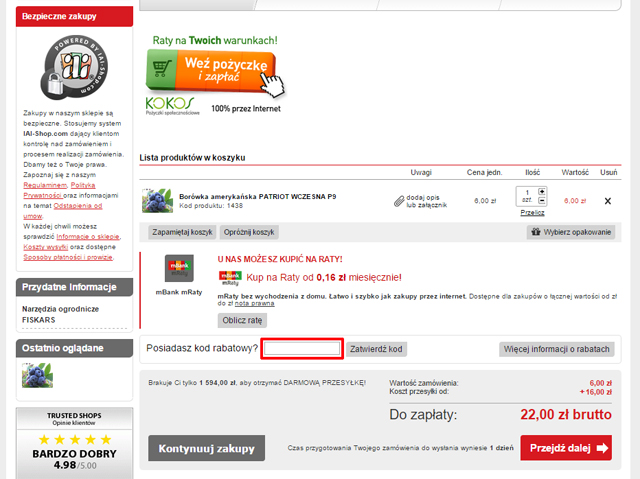 4. Przycisk: „Pokaż kod i otwórz stronę” przekierowuje na stronę sklepu. U góry strony w ramce pojawi się kod rabatowy.