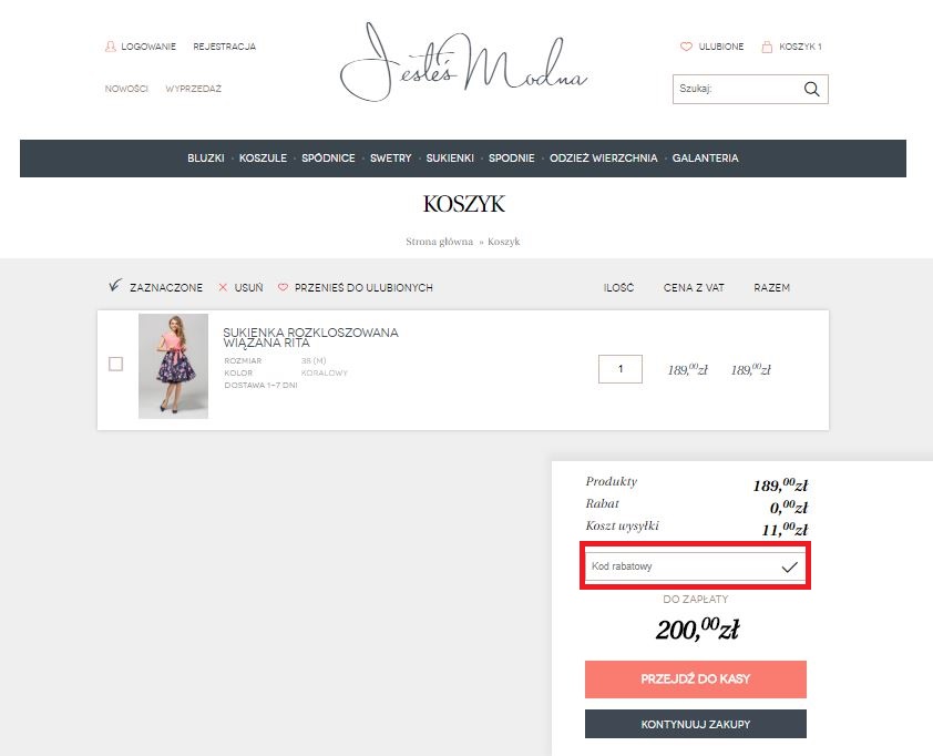 Kod rabatowy 20% na zakupy w Jesteś Modna!