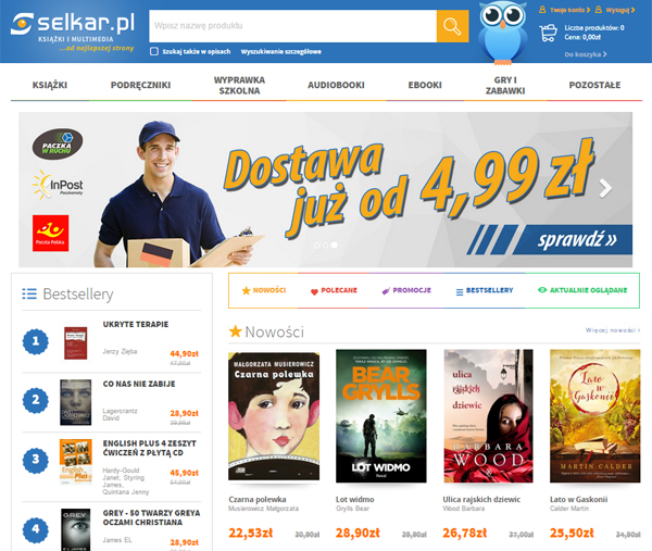 Selkar.pl jest internetową księgarnią, dzięki której zmienisz swoje książkowe przyzwyczajenia. Wiele książek dostępnych jest w przedsprzedaży, dzięki czemu możesz mieć do nich dostęp już przed premierą. Ponad 200 tysięcy produktów to ogromny wybór książek mniej lub bardziej znanych autorów. W ofercie znajdują się również audiobooki, płyty DVD z filmami, płyty muzyczne czy zabawki. Dzięki temu w jednym miejscu zrobisz kompleksowe zakupy – bez względu na okazję. W sklepie Selkar.pl wszystkie produkty zostały podzielone na kategorie. Dzięki temu z łatwością będziesz poruszać się po sklepie i umieszczać w koszyku wybrany asortyment. Zaś szeroki wybór opcji płatności i dostawy, pozwoli na szybkie i wygodne sfinalizowanie transakcji. Zakupy będą tym przyjemniejsze, im większe zniżki uda Ci się upolować. Biorąc jednak pod uwagę kupony promocyjne, wcale nie będzie tak trudno. Jeśli nie lubisz czekać na zamówione produkty, Seklar.pl jest do tego idealnym miejscem. Niektóre produkty wysyłane są w ciągu 12 godzin, co jest gwarancją dostawy na następy dzień. A gdy z jakiegoś powodu się rozmyślisz, masz aż 90 dni na zwrot lub wymianę! Dodatkowym atutem są zniżki na przesyłkę, co w połączeniu z kodami rabatowymi stwarza wspaniałe promocje. Już teraz pobierz aktualne kody rabatowe, by skorzystać z okazji cenowych. Atrakcyjne zniżki sprawią, że czytanie książek stanie się Twoim hobby.