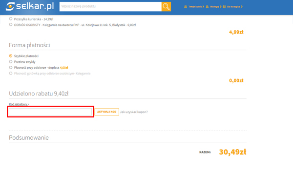 Selkar - instrukcja korzystania z kodów rabatowych: