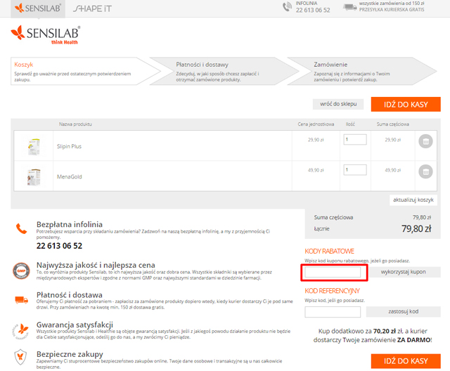 SensiLab - instrukcja korzystania z kodów rabatowych: