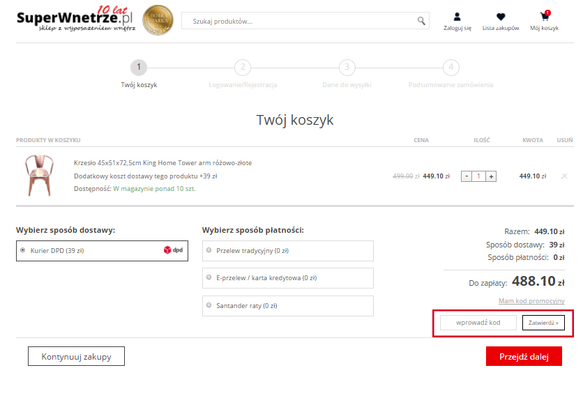 Kod rabatowy 20 zł na pierwsze zakupy od 250 zł w Super Wnętrze!
