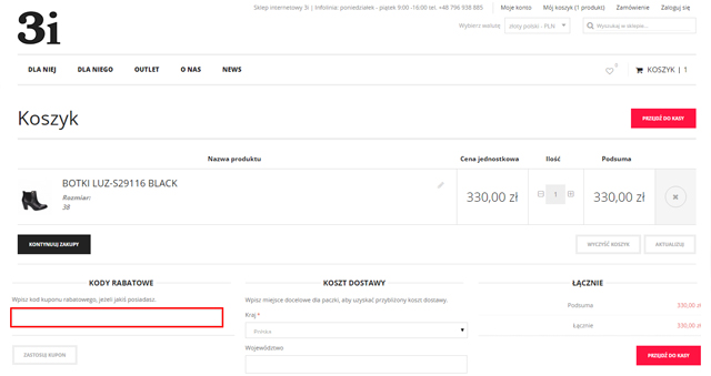 A teraz sprawa najważniejsza: co zrobić, by zgarnąć kupony rabatowe do 3i-store.com? Zadanie, które na Ciebie czeka jest bardzo proste. Na początek – kluczowa informacja. Za kody rabatowe nie płacisz ani grosza. Nasz serwis udostępnia je gratis i możesz je pobrać w każdej chwili. Po drugie – każdy pobrany kod zadziała niezawodnie, ponieważ na bieżąco aktualizujemy listę – tak, by nasze kupony zniżkowe były po prostu niezawodne. Po trzecie zaś – kody działają online. Nie musisz więc szukać salonu 3I (choć tych z roku na rok przybywa) – wystarczy, że siądziesz wygodnie przed komputerem i przejrzysz bieżącą ofertę.