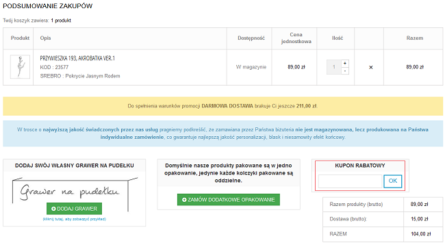 Rabat nie łączy się z innymi promocjami, oferta ważna do 12 maja 2021 do końca dnia. Kod rabatowy umieść w koszyku zamówienia.