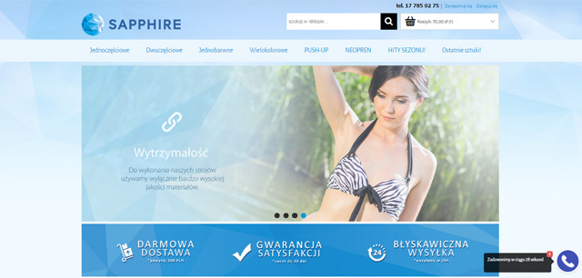 Martwisz się swoim niezbyt dużym biustem? Często ukrywasz go pod luźnymi bluzkami rezygnując z plaży nawet podczas najgorętszych dni lata? Nie musisz rezygnować z przyjemności żeglowania, opalania się nad morzem czy jeziorem, albo wystawiania ciała na słońce podczas pobytu na basenie. Promocja Sapphire Fashion to okazja do zamówienia kostiumu typu push up, który podkreśli kształt Twojego biustu dodając mu nieco objętości, dzięki czemu Twoja sylwetka będzie bardziej proporcjonalna. Skorzystaj z okazji i bądź seksowną uwodzicielką także na nadmorskiej plaży. Wpisz kod promocyjny Sapphire Fashion, zamów kostium plażowy typu push up i przyciągaj spojrzenia mężczyzn swoim wyglądem. Korzystając z promocyjnych cen zapłacisz mniej za wybrane modele, dlatego możesz pozwolić sobie nawet na dwa tego typu kostiumy.