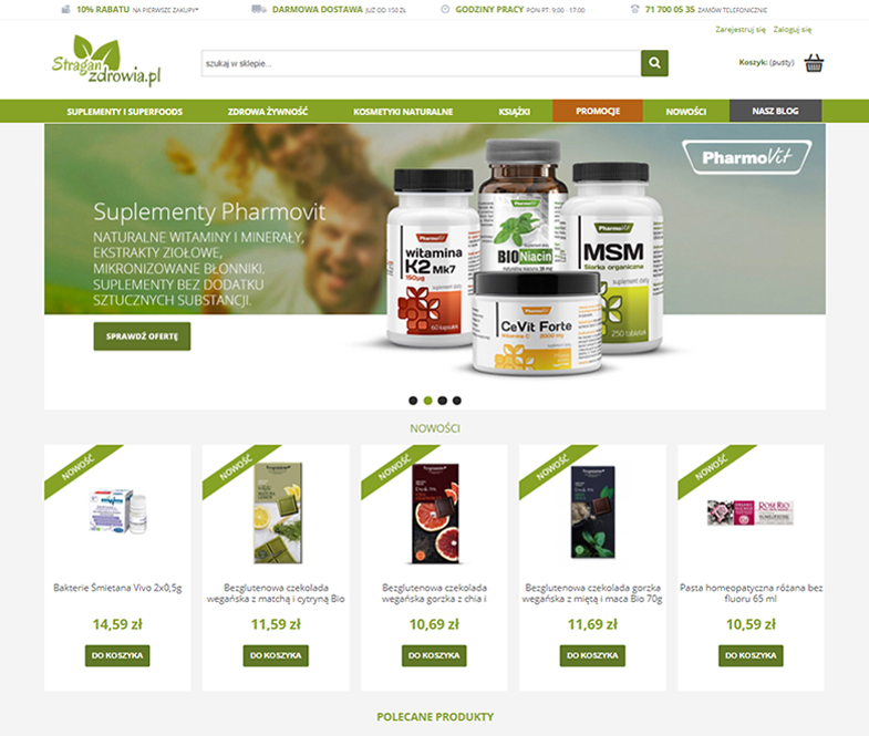 StraganZdrowia.pl to sklep internetowy, w którym czekają na Ciebie zdrowe i ekologiczne produkty, które pomogą Ci żyć w zgodzie z naturą. Jeśli szukasz zdrowej żywności, naturalnych kosmetyków i innych produktów związanych ze zdrowiem i urodą – to oferta właśnie dla Ciebie. A jeśli chcesz kupować zyskując maksymalne oferowane przez StraganZdrowia.pl zniżki – zrób to, mając w dłoni przygotowany przez nasz serwis kod rabatowy – w ten sposób otrzymasz dostęp do wszystkich najlepszych promocji. A to pozwoli Ci albo na zrobienie większych zakupów za mniej pieniędzy lub po prostu, na zaoszczędzenie pieniędzy i zachowanie ich we własnym portfelu. A jako, że nasz kupon rabatowy do StraganZdrowia.pl jest dostępny zupełnie za darmo, grzechem byłoby z niego nie skorzystać! Zrób to jeszcze dziś i daj sobie szansę na zdrowe życie i dobrej jakości produkty bez przepłacania!